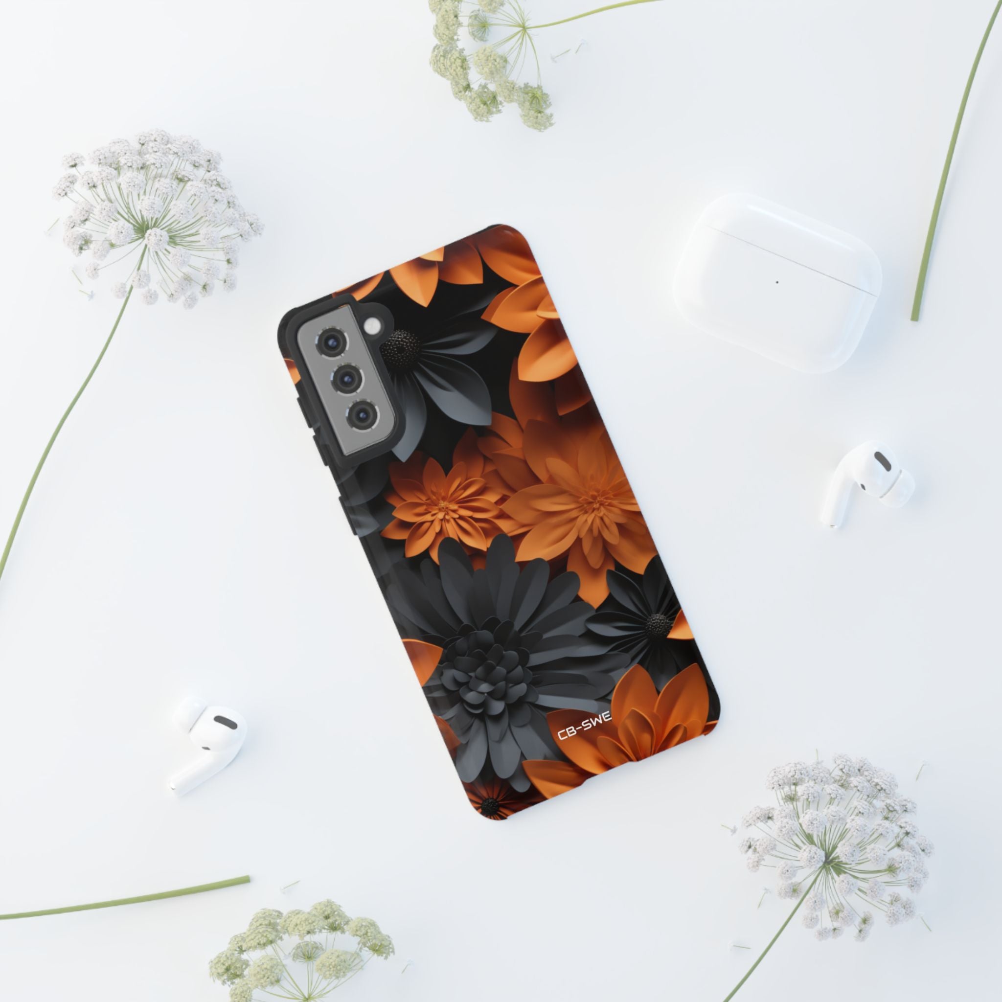 Graphical Orange Florals - Samsung Case